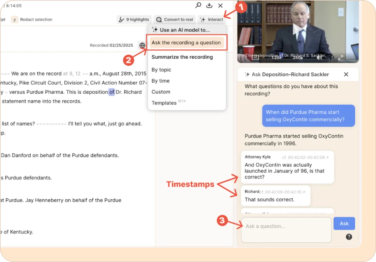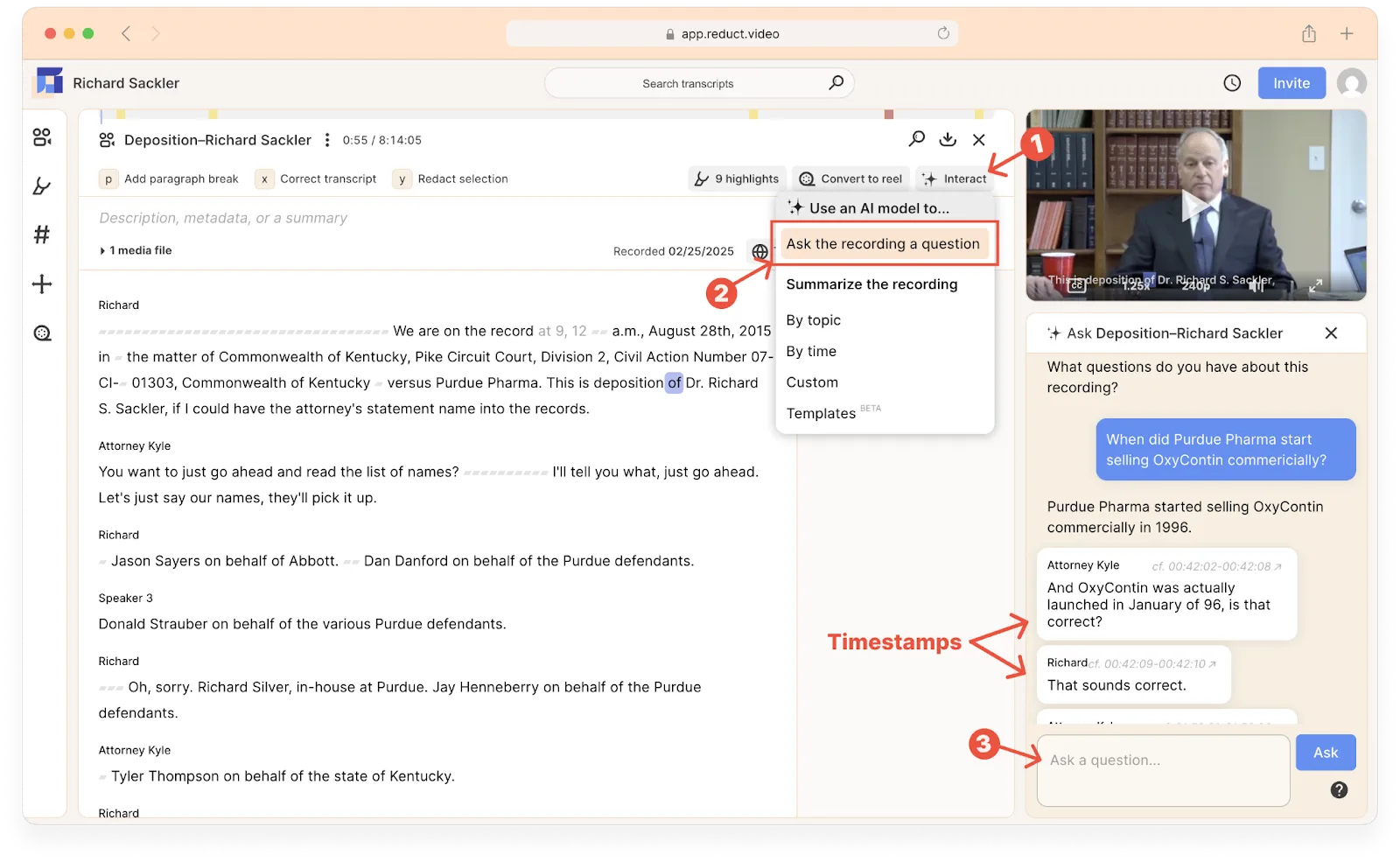 Reduct will then generate a summarized answer with clickable timestamps, allowing you to jump directly to the part of the recording where the information is mentioned.