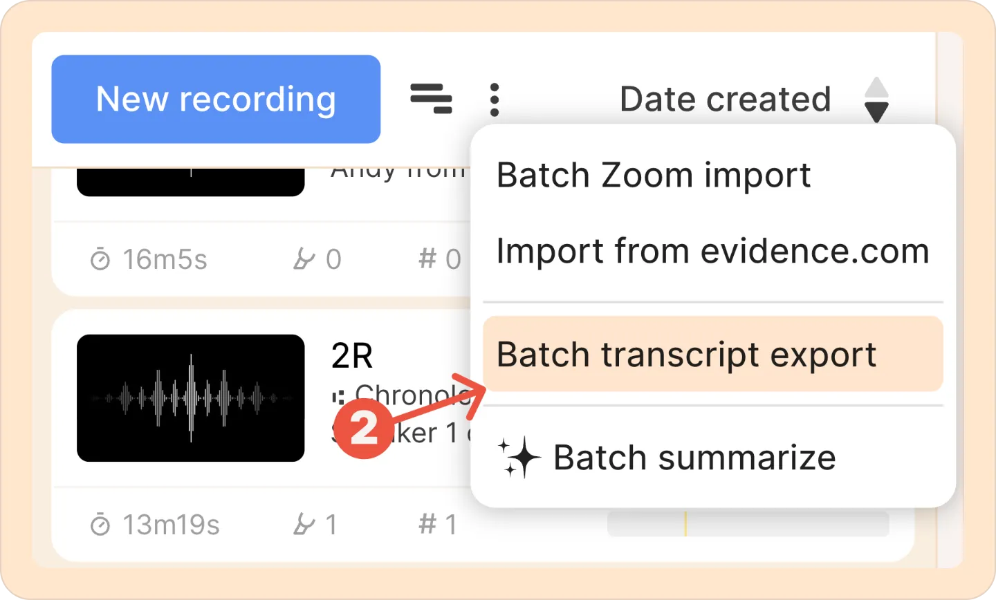 - Legal format (.pdf): Exports a print-ready PDF transcript formatted to meet standard court system specifications.