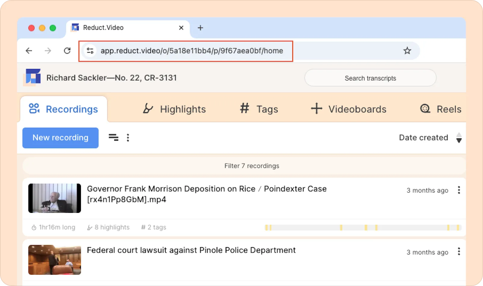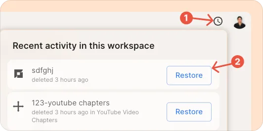 You can delete and restore recordings, projects, videoboards, and reels to help manage and clean up your workspace.