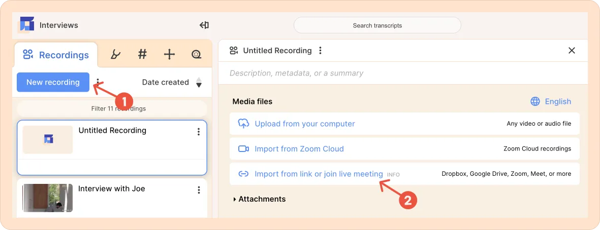 To skip manual importing altogether, connect your calendar to Reduct. Reduct will automatically record and transcribe all your scheduled meetings — no extra steps required. (More here on Reduct’s Live Capture).