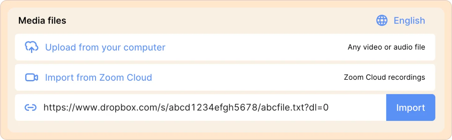 If you have video (or audio) files stored on a cloud platform, you can import them directly into Reduct without downloading your files.