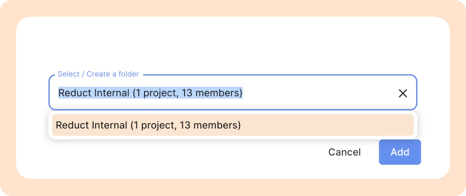 - To create a new folder, click on the kebab (︙) menu to the right of a project. From the list of options, select Add to folder.