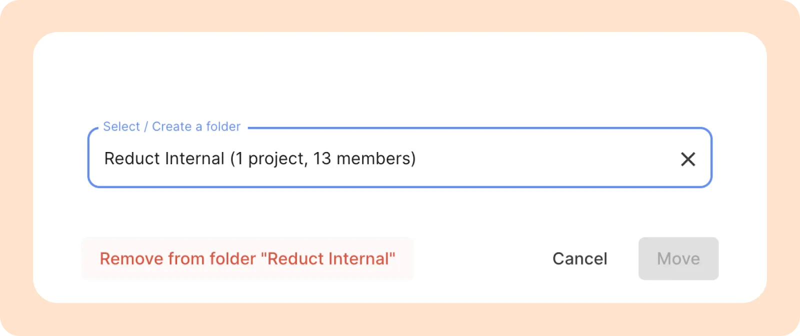 Use the quick filter to select multiple projects and add, remove, or change folders in one go. When you type in the “filter” box, a new kebab (︙) menu will appear on the right with batch options.