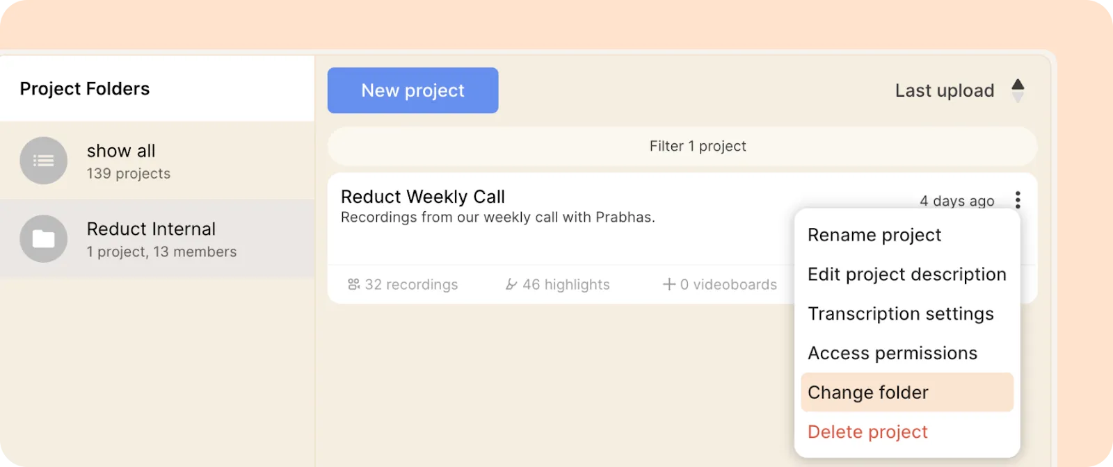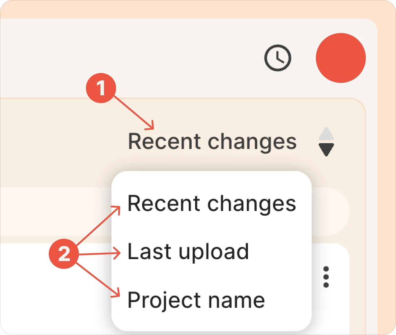 You can also sort your projects by recent changes, last upload, or project name to quickly find what you’re looking for.
