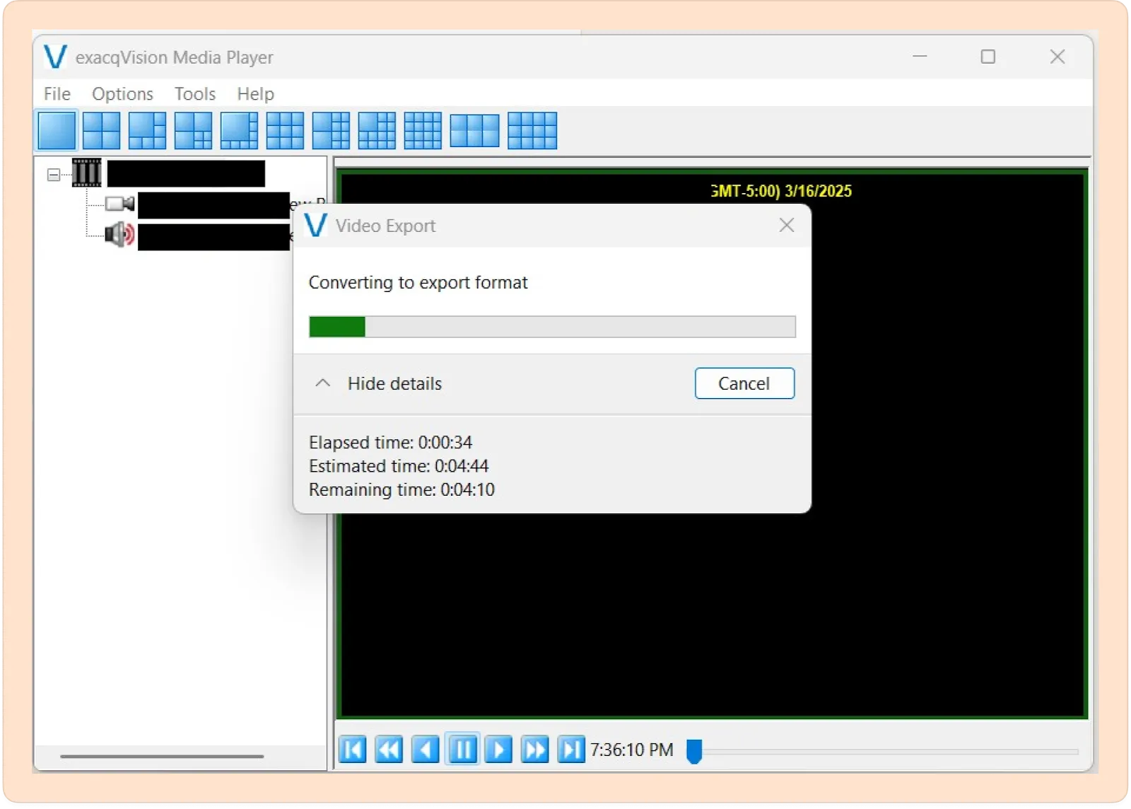 To use their footage in Reduct, you’ll need to export it to MP4 from Genetec’s Security Center software. Genetec provides a walkthrough here: Exporting an MP4 video with Security Center.