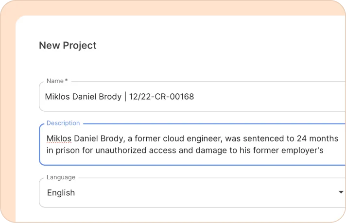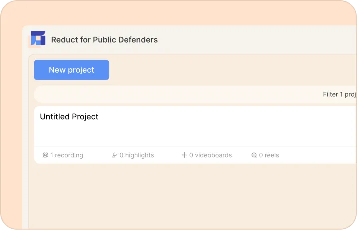 In Reduct, work is organized into projects, which typically represent cases. You can create a new project or join an existing one within your workspace, depending on what you have access to.