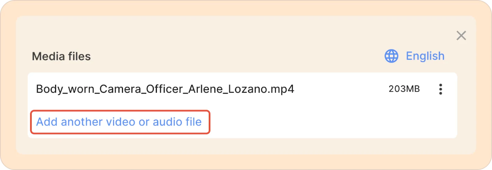 - Click the Add another video or audio file button to select new media files. This will start the transcription process for the new file.