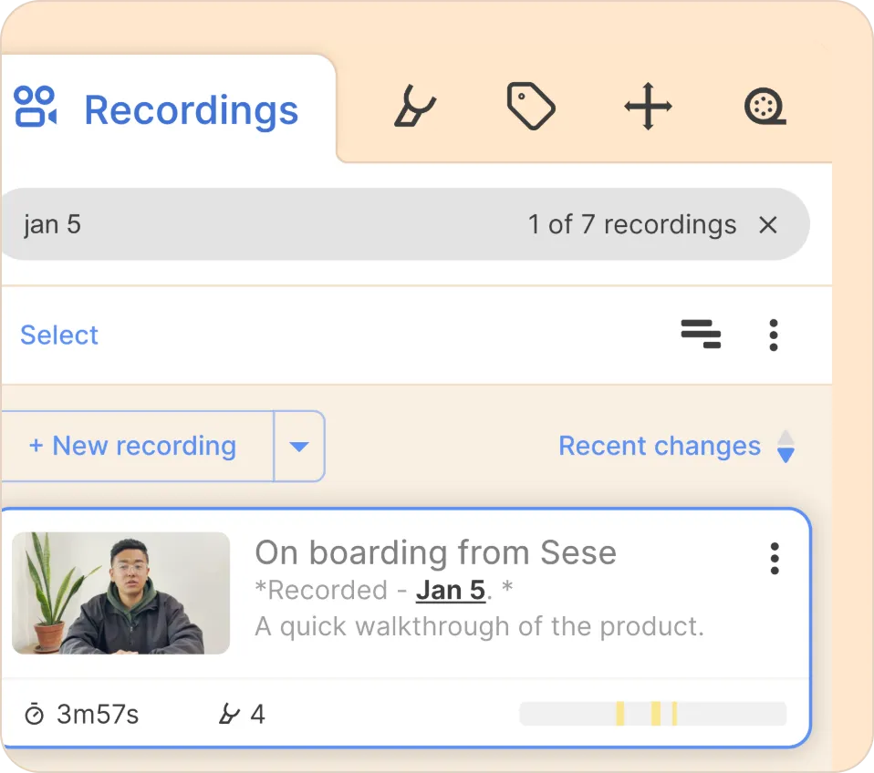 Use descriptions to filter recordings.Use the left sidebar and type in keywords from the description to locate what you need.