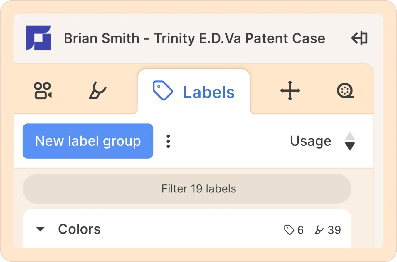 All your labels are accessible from the left-hand side panel in Reduct. You can also filter them by label name or highlight color to easily locate them.