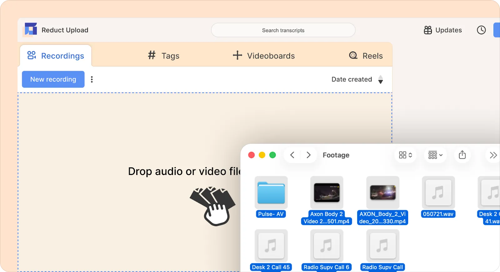 Uploading your audio and video files into Reduct