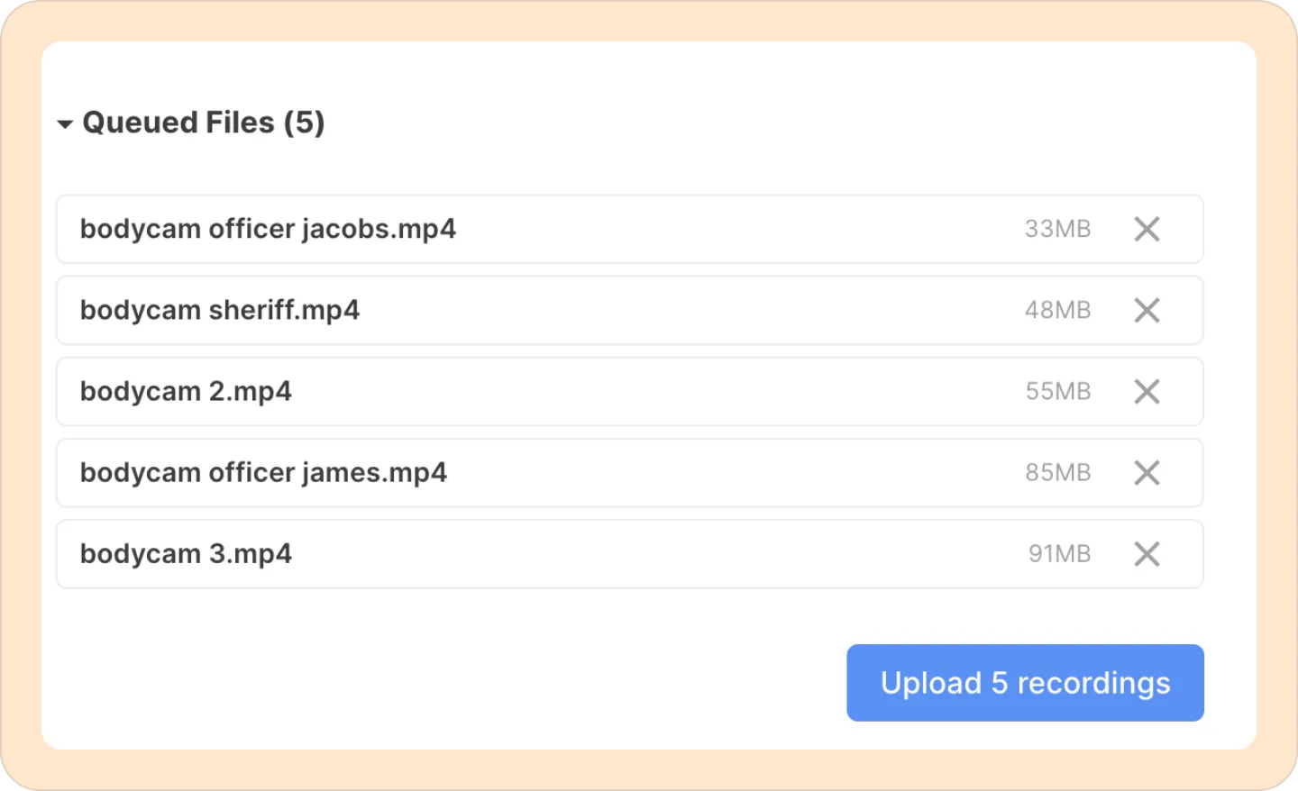 You can upload multiple audio/video files at once and choose whether to keep them separate or combine them into one recording.
